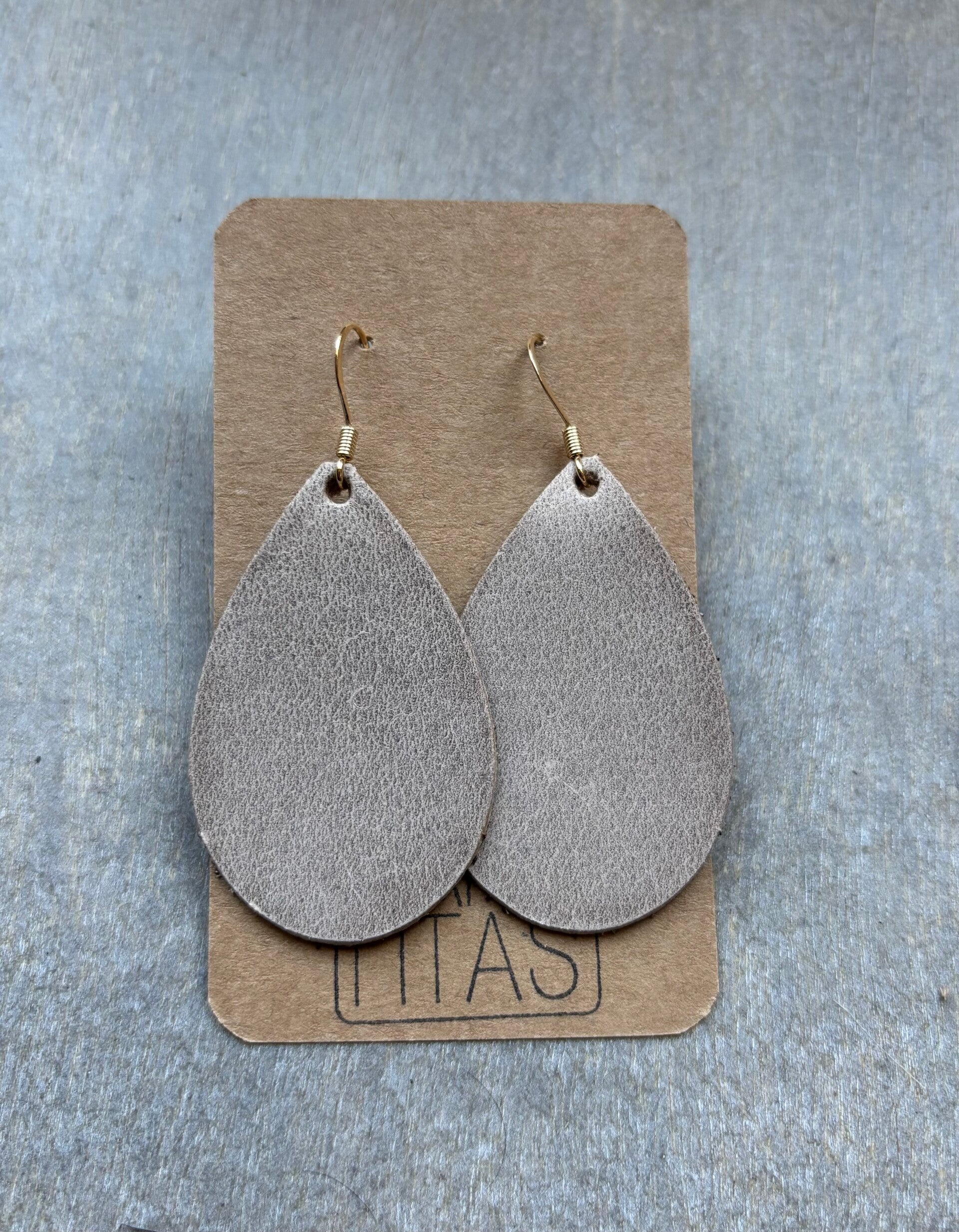 Druppel in taupe leer.
