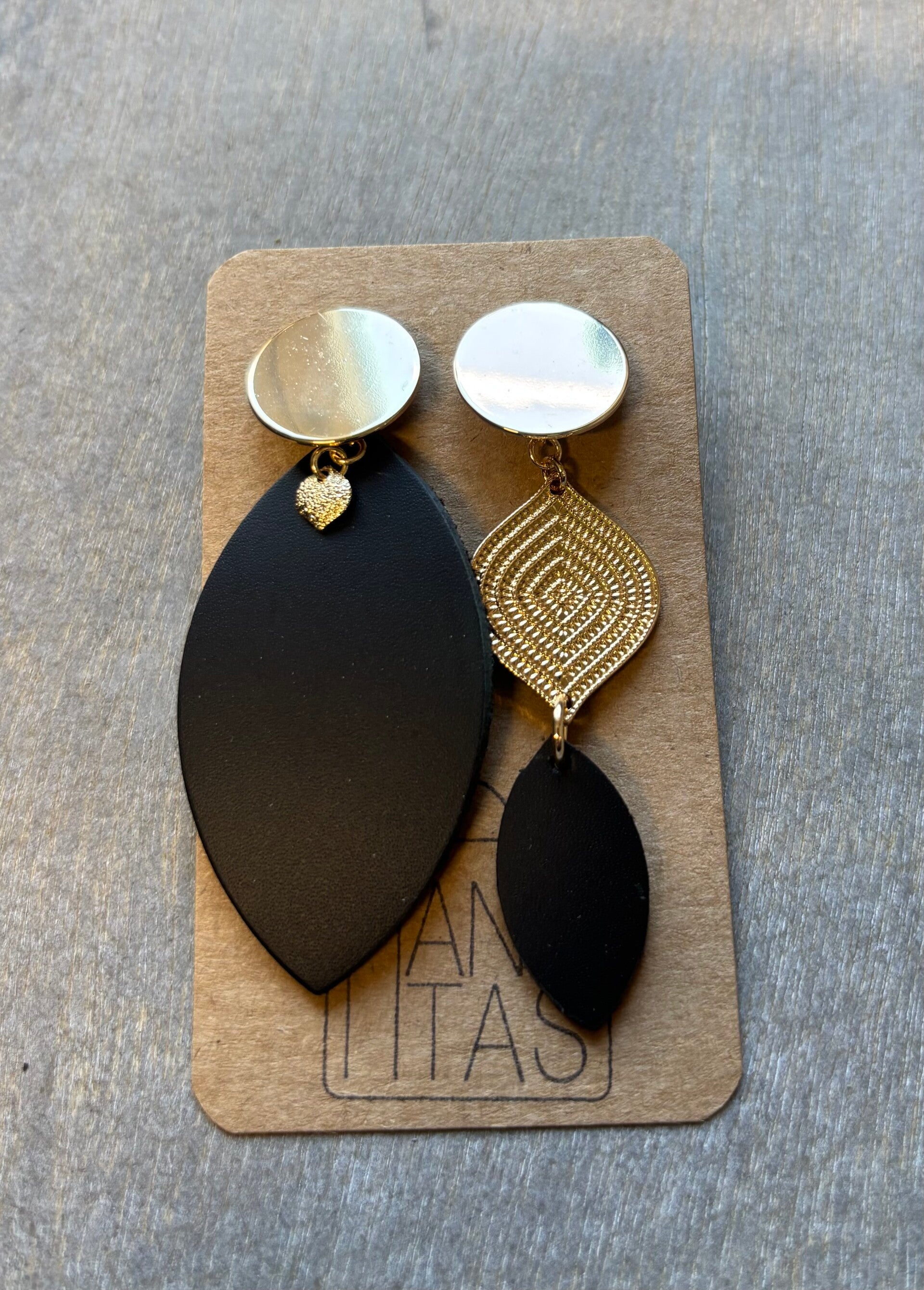 Goudkleurige stekers met zwart leren en goudkleurige hangers